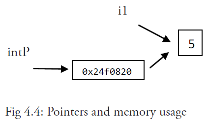 这个内存地址为称之为指针(你可以从上图中很清晰地看到,第 4.9 节将会详细说明),这个指针实际上也被存在另外的某一个字中。